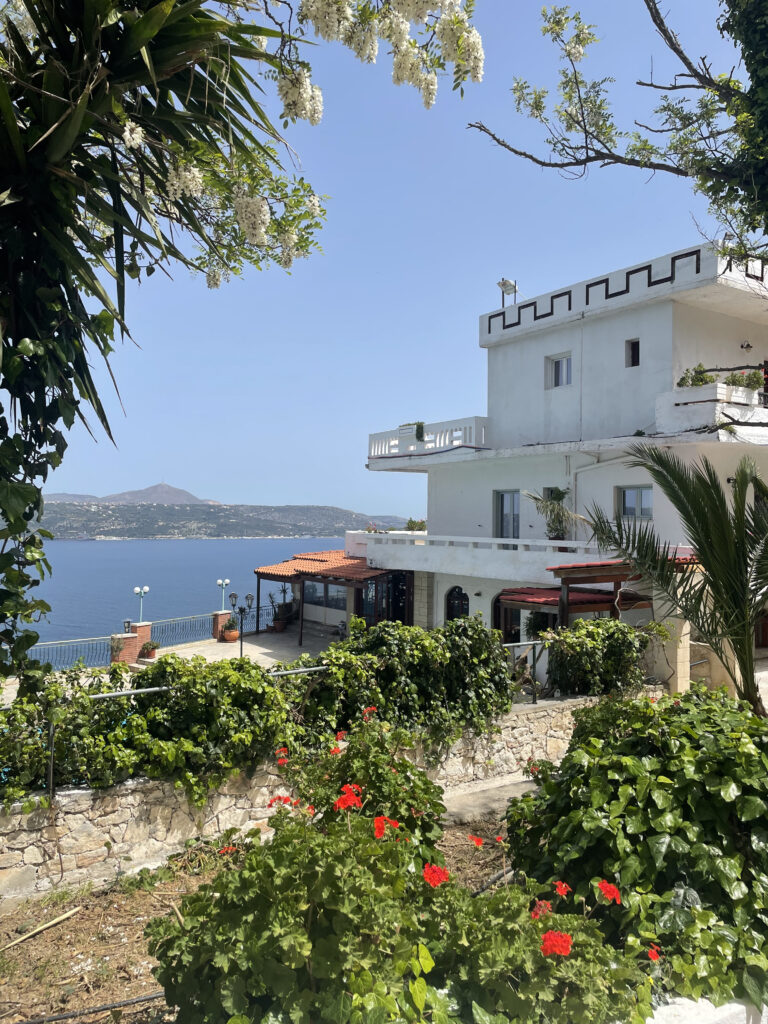 Vi bor på Ingrid Margaritas hotel ved Soudabugten. Ingrid er med os i en del af vores cirkler og med på pilgrims-vandringen til Lissos.