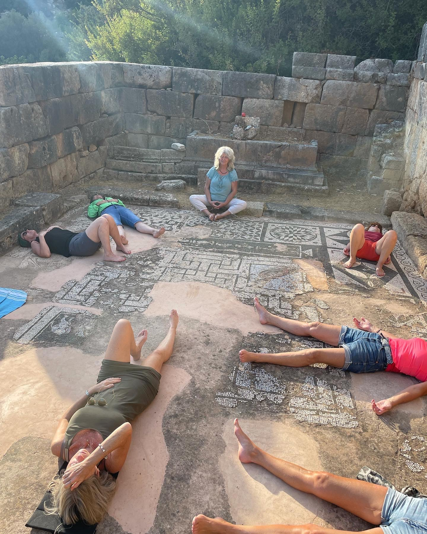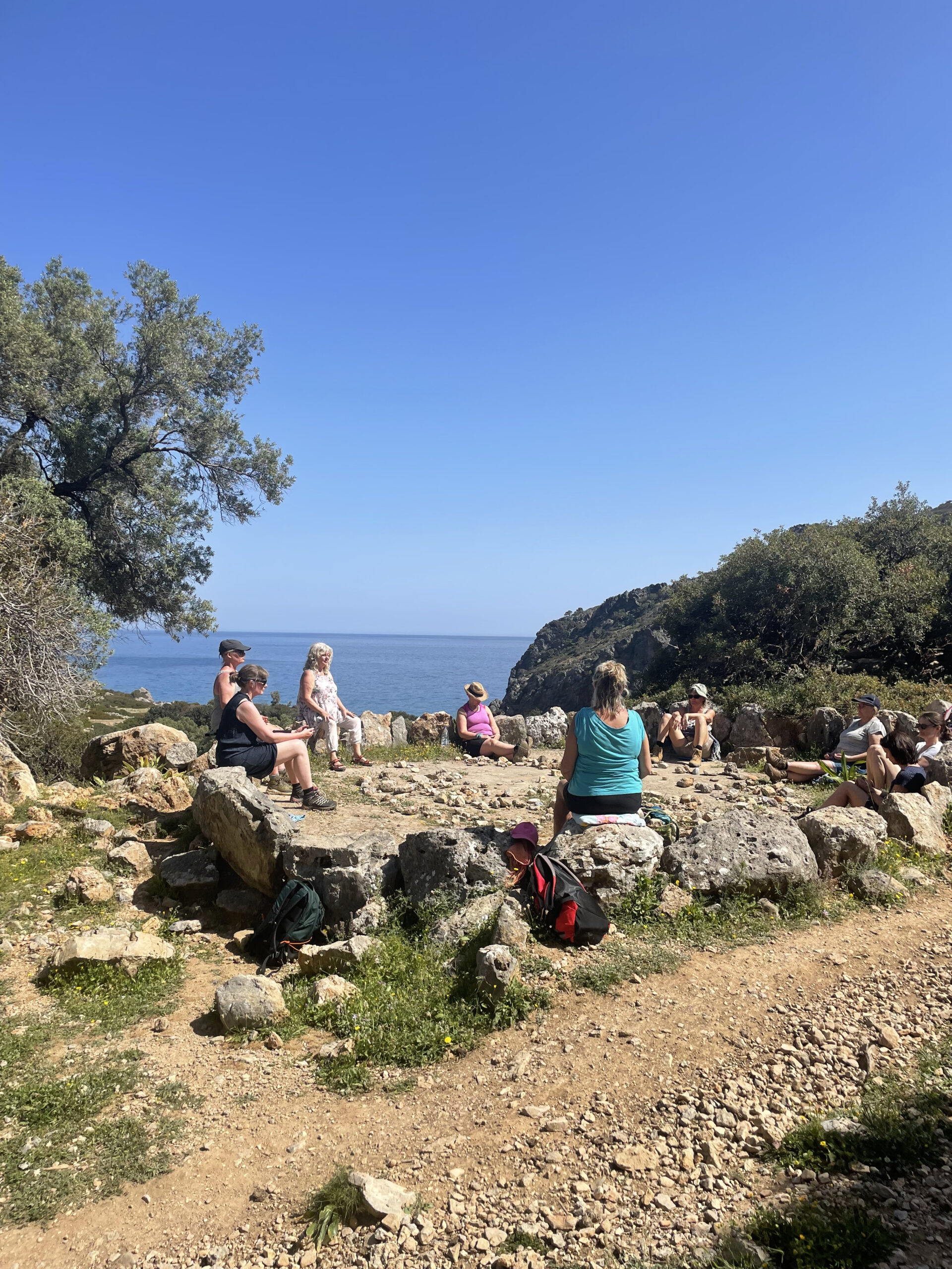 Vi har en tur i turen: Vi kører med vores egen bus over bjergene til sydkysten, hvor vi vandrer i stilhed igennem Agia Irini kløften den ene dag, overnatter en nat i Sougia og næste dag går vi til healingsbyen Lissos, hvor vi besøger det gamle Asclepios-tempel. Andre dage går vi til Aptera landsbyen og kører i bus til Agia Sophia grotten.